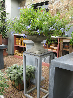 Outside, the walkways are paved in small crushed stone, just as is done in France - the basis of their design sensibility. Because the landscaping is French in feel, you won't find a lot of bright, blooming plants here. The focus is more on grasses and succulents than on azaleas and crepe myrtles, the typical mainstays of Houston landscaping. Large pots made of stone or tin are filled with grasses that quietly sway in the breeze. A large fountain is pouring water into what appears to be a huge animal bath, made of iron, not the usual stone. Nothing is typical here, nothing is expected. And no one does this better than Thompson + Hanson. Located on Saint Street in the hot, new upcoming design area of town. Neighbors include Indulge, Design District, Pile, Chateau Domingue, Krispin, and the soon to relocate, M. Naeve, featured yesterday.