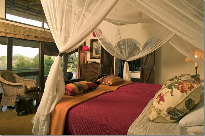 Another Singita lodge, the Lebombo Lodge is located in the Kruger National Park in South Africa, bordering on Mozambique. The suites are all raised on stilts allowing for safe viewing of the unfenced nearby lions.